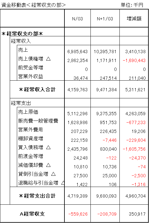 私はキャッシュフロー計算において、資金移動表、とりわけ経常収支の状態を重視しています。その理由はすでに述べた通り、経常収支の変化を読むことが倒産予知に極めて有効だからです。