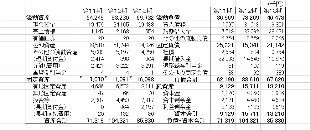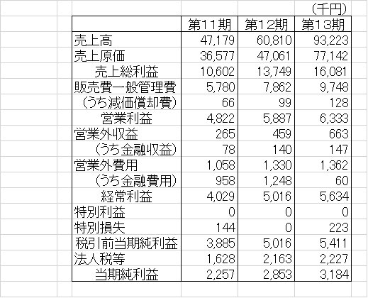 | 計算項目 | 第11期 | 第12期 | 第13期 |