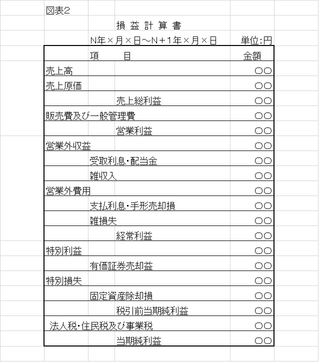 • 損益計算書(P/L) 一会計期間(通常1年)の収益・費用・利益(損失)を示す → フローの概念